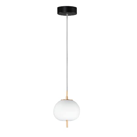 ET2 Lighting-E25111-92BKGLD-Collection: Quest, Material: Steel, Finish Color: Black/Gold, Width: 6.25", Height: 9.25", Length: 6.25", Lamping Type: LED, Number Of Bulbs: 1, Wattage: 6 Watts, Dimmable: No, Moisture Rating: Dry Rated, Desc: Inspired by contemporary Euro design, this collection features Satin White cased glass fonts suspended by rods of Gold with Black accents. Powered by integrated LED modules, light is directed downward in a soft and diffused manner. Warranty: 3 YearsColor Temperature: 3000 / Lumens: 420 / CRI: 80+ / Rated Life: 30000 Hours / Canopy Included: Yes / Shade Included: Yes / Canopy Diameter: 6 x 6 x 1.5. ,-Quest-6W 1 LED Pendant-6.25 Inches wide by 9.25 inches high
