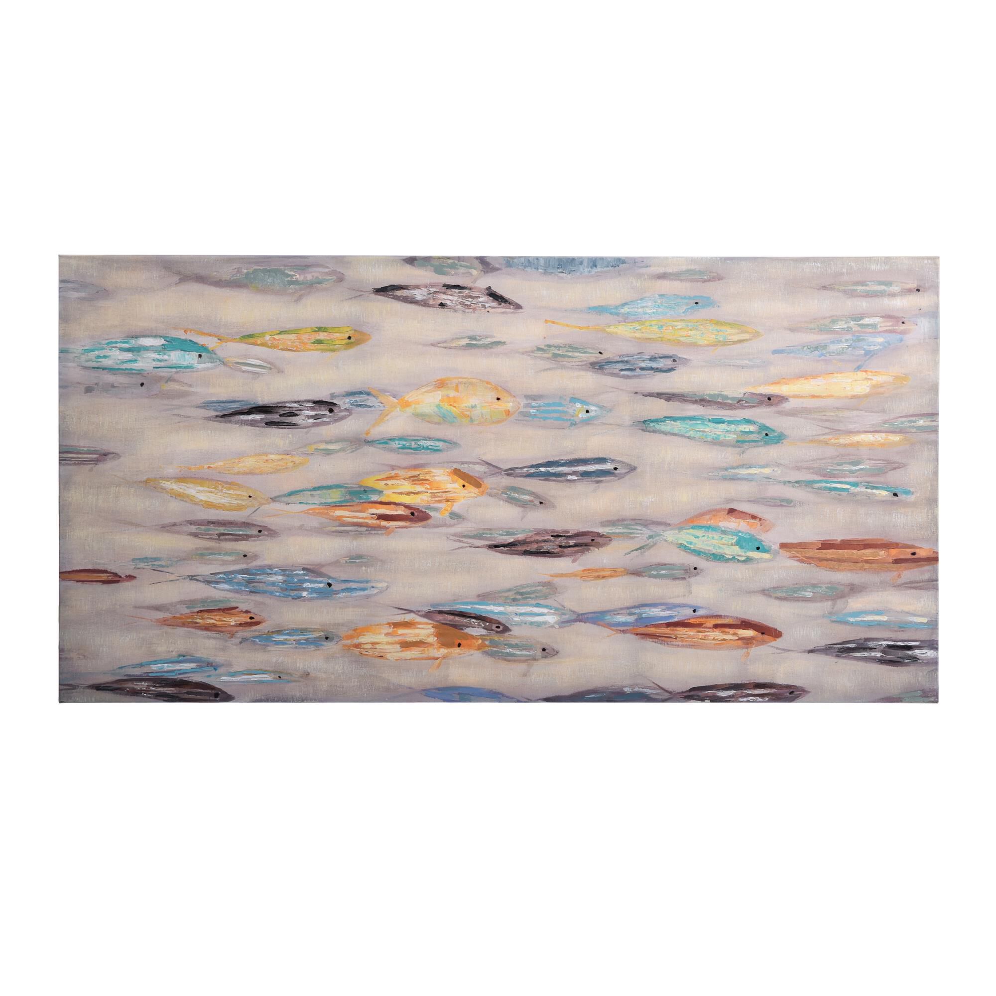 Stylecraft Home Collection WI33182DS Directional Angle School - 28 Inch School of Fish Canvas Wall Print, Natural Finish