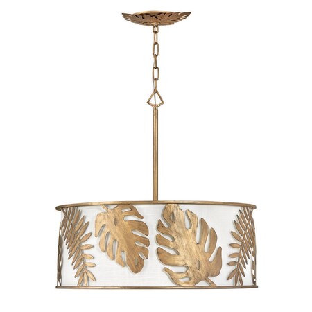 Fredrick Ramond Botanica Collection Five Light Medium Drum Pendant, Burnished Gold w/White Linen Shade
