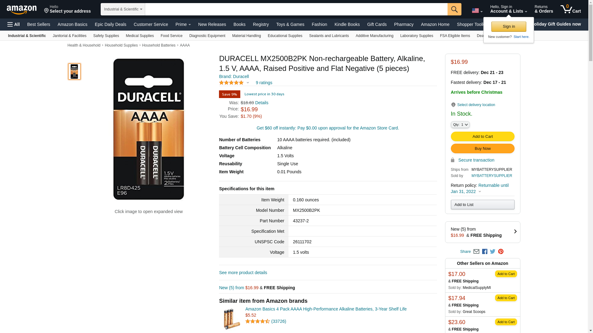 | bhid.com | DURCEL MX2500B2PK | 1 | 1 | 1 @ $4.62 | |