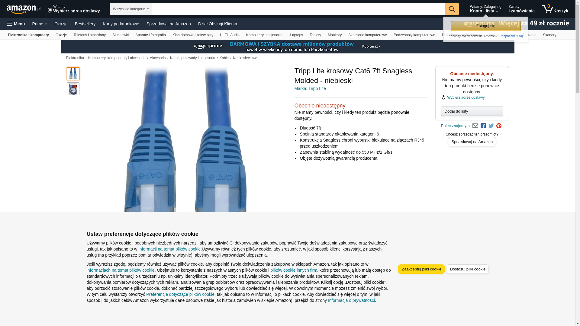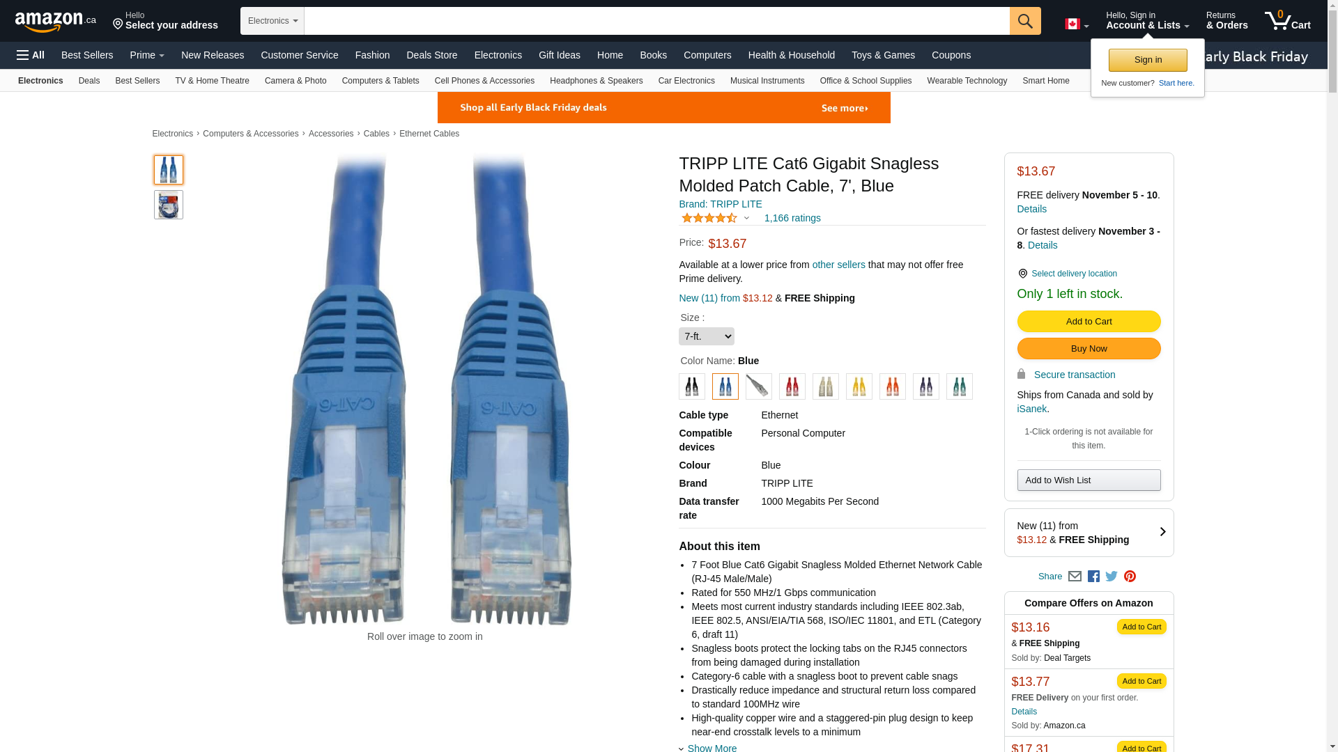 Package: 1 EaMeets Category 6 cabling standards Premium cabling for CAT-6, CAT-5E & CAT-5 applications Meets most current industry standards including IEEE , IEEE 802.5, ANSI/EIA/TIA 568, ISO/IEC 11801 & ETL (Category 6, draft 11) Drastically reduces impedance & structural return loss compared to standard 100MHz wire Snagless boots protect the locking tabs on the RJ45 male connectors from being damaged during installation Features molded connectors with integral strain relief Rated for 550MHz/1Gbps communication Blue Lifetime limited warranty