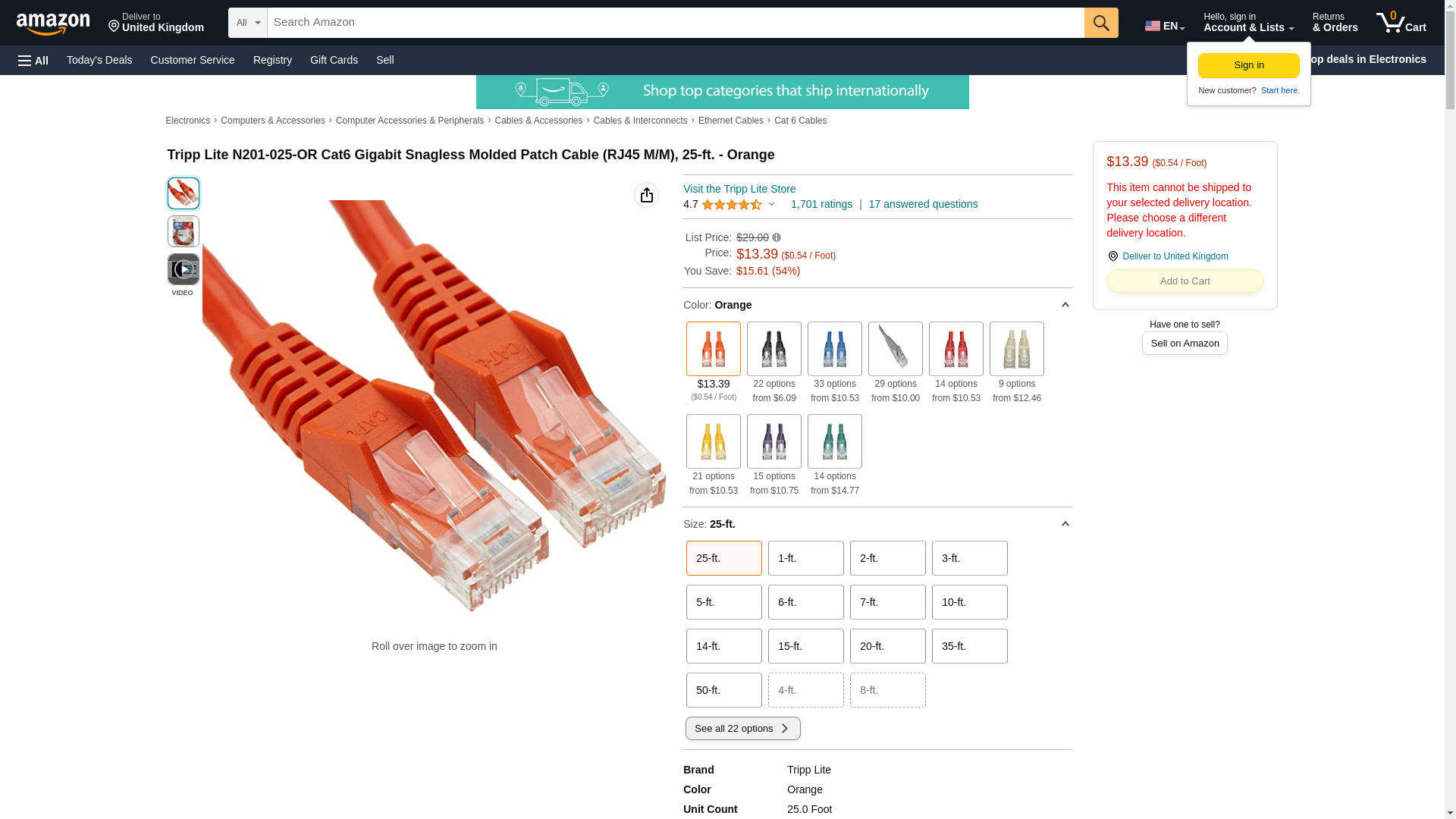 | Part number | Tripp Lite-N201-025-OR |