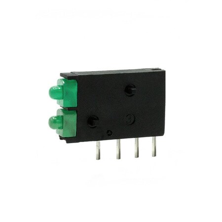 - <b>Order Unit:</b> Each 1 <b>Bulb Size:</b>: 2mm <b>Forward Current If:</b>: 20 <b>Forward Voltage:</b>: 2.1 <b>Height:</b>: 8.6 <b>LED Color:</b>: Green <b>LED Mounting:</b>: Through Hole <b>Luminous Intensity:</b>: 8.7 <b>No. of LEDs:</b>: 2 <b>Packaging:</b>: Each <b>SVHC:</b>: No SVHC (17-Dec-2014) <b>Viewing Angle:</b>: 38 <b>Width:</b>: 2.5