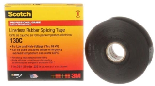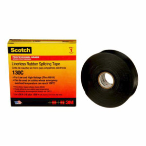 3M 130C-1X30FT Scotch Linerless Rubber Splicing Tape, 130C, Black, 1 in x 30 ft | JensenTools
