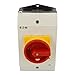 Moeller P1-25/I2/SVB MAIN SWITCH, 25A, SURFACE MOUNTING, 3 POLES, WITH RED ROTARY HANDLE AND YELLOW LOCKING RING | Kempston Controls