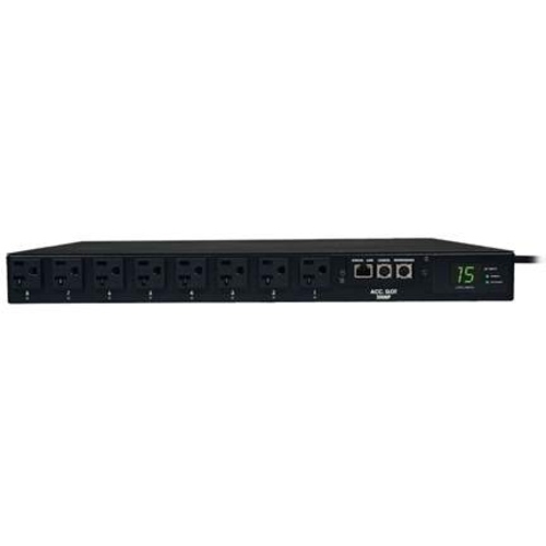 Tripp Lite's 120v 15a Metered Pdu System With Automatic Transfer Switching (ats) Is An 8 Outlet Pdu With A Digital Display To Indicate Total Pdu Power Consumption In Amps. Outlets Are Sequentially Turned On At 250 Millisecond Intervals When The Pdu Is First Energized From An Unpowered State To Prevent Inrush-related Equipment Interaction On Startup. Installed Web/network Monitoring Card Enables Remote Power Monitoring And Control. Remotely Displays Status Of Input Power, Load Capacity, And Outlet Power Condition Via Secure Network Or Web Browser Interface. Offers Individual Outlet Control To Power On, Off, Or Cycle Ac Output To Regain Control Of Locked-up Servers And Other Network Devices. Load Ramping And Shedding Provides Automatic Power Management To Any Type Of Network Configuration. Supports Notification And Logging Of Input Power Status, Event Notification, Output Power And Pdu Loading Conditions. Supports 1u Rackmount Installation In A 2 Or 4 Post Racks. Included Are 8 Nema 5-15r Outlets And Two 12 Ft. 5-15p Optional-use Dual Cords For Auto-transfer Switching (ats) Option. Optional Integrated Ats Is Available For Use When Two Separately Derived Input Power Sources Are Available. The Attached Power Cord Serves As The Primary Ac Input Cable, While The Included Detachable Power Cord Serves As The Optional-use Secondary Ac Input Connection.