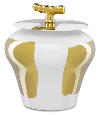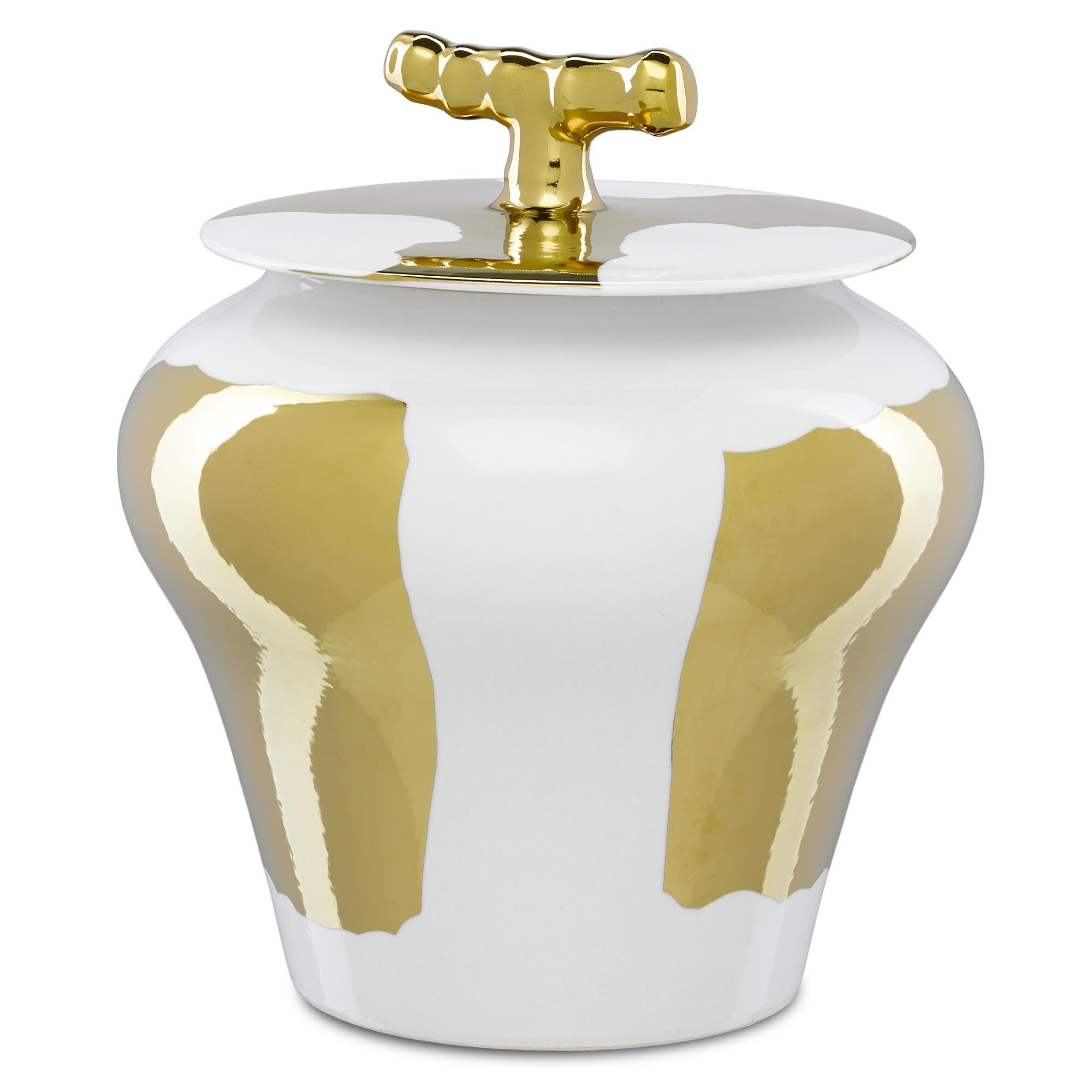 Currey and Company Brill 13 3/4" High White and Gold Jar