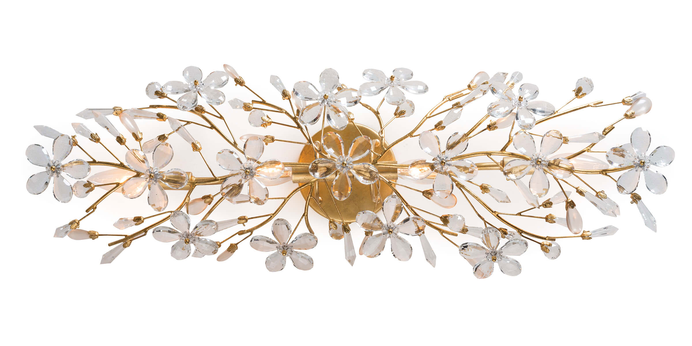 Regina Andrew Crystal Gold Leaf Frame Cheshire Decorative Wall Sconce with Hand Polished Flowers | Single Socket 60 Watts Max Hard Wire for Living Room, Bedroom, or Hallway