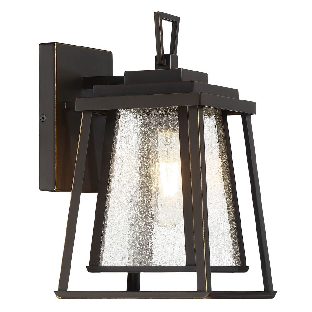 Decadence takes a linear form to stylize this contemporary outdoor wall lantern, an exceptional choice for a custom exterior spot. From the Sleepy Holly collection by Minka Lavery, its village-inspired design goes a bit nautical, as a Dakota bronze finish aluminum double frame joins a seedy glass shade that offers a partial view of a charming candelabra bulb mount. Spice up a custom space with this exceptional light.