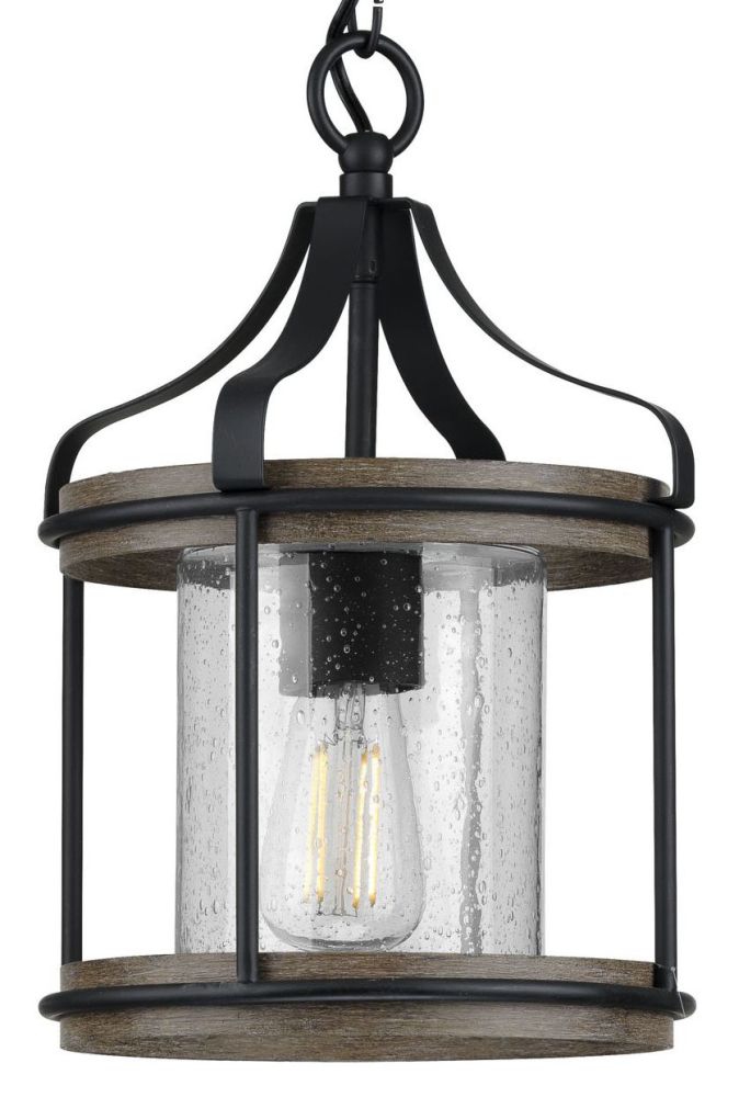 Brenham Collection 1-Light Clear Seeded Glass Farmhouse Indoor Pendant Light Matte Black