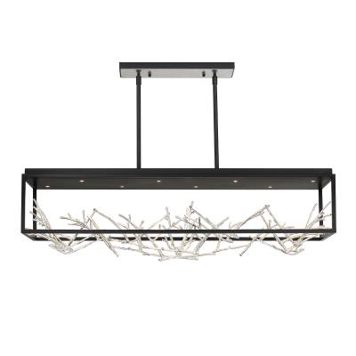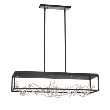 Eurofase 35642-023 Aerie Floating Gilded Branches Rectangular LED Chandelier, 8-Light 48 Total Watts, 12" H x 12" W x 42" L, Black/Silver