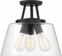 The Calhoun Collection is distinguished by simple lines that can easily enhance transitional and contemporary décor. Measuring 11½" high x 13" wide, this three-light semi-flushmount offers a clean silhouette in a Matte Black finish and clear glass shades. It is illuminated by three 60-watt Edison-base bulbs.