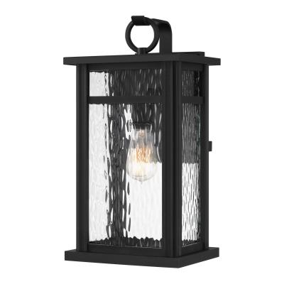 - Transitional outdoor wall light, blending farmhouse and traditional styles, from the Moira collection by Quiozel.