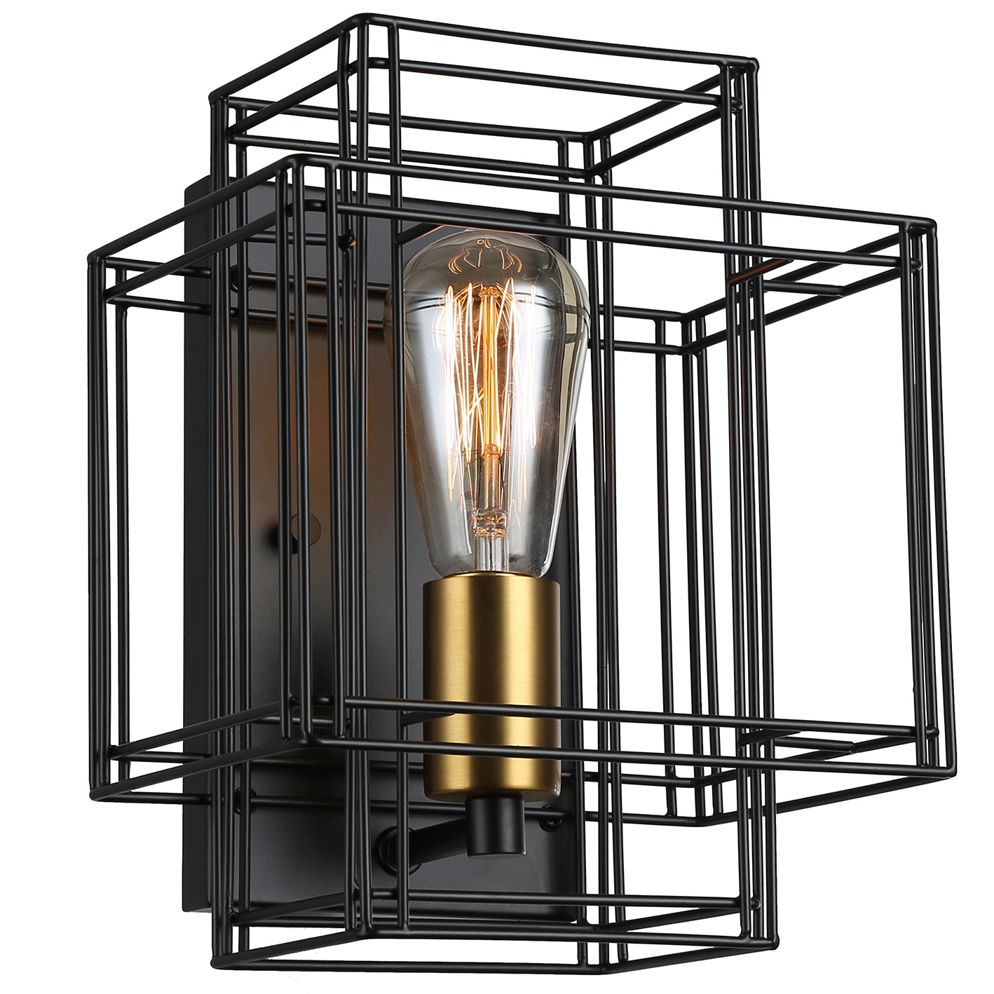 (AC11737BK) Artisan collection Industrial style 1 light Wall Sconce in Black and Brushed Brass finish. Light bulb data: 1 E26/Medium (Standard) 60 watt. Bulb included: No. Dimmable: Yes. Rated: Dry location.