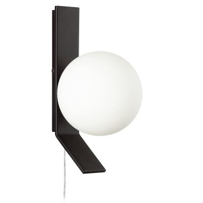 1 Light Halogen Wall Sconce, Matte Black with Opal White Glass