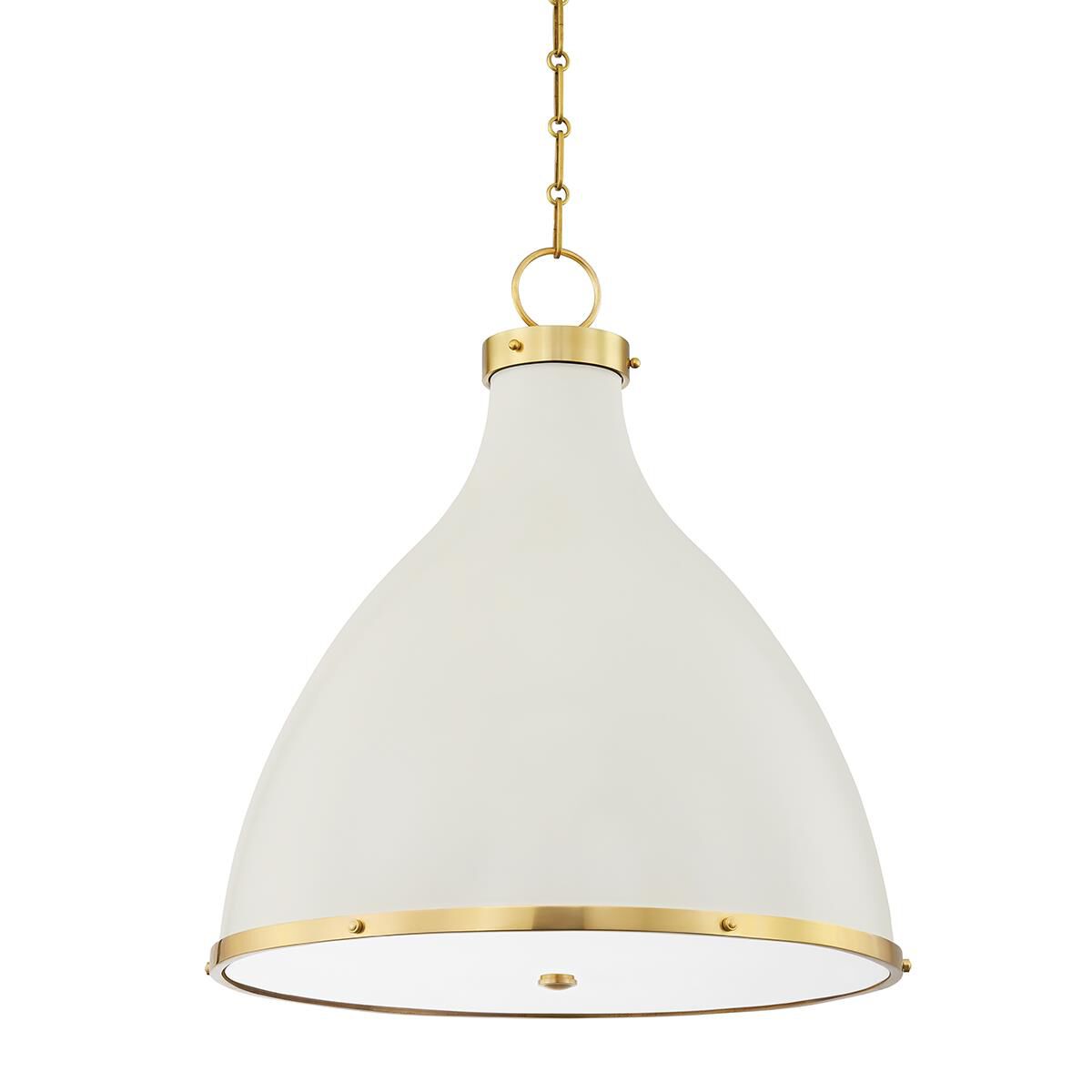 Hudson Valley Lighting MDS362-AGB/OW Painted No. 3-3 Light Large Pendant, Aged Brass/Off White Finish
