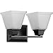 Progress Lighting Clifton Heights Collection 14 1/4 in. 2-Light Matte Black Vanity Light Etched Glass New Traditional Bath
