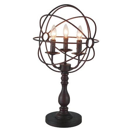 Add a rustic farmhouse vibe to your home with the Arza 3 Light Table Lamp. This light source showcases an orbital open shade encasing three exposed candelabra bulbs. With a silhouette reminiscent of a classic three arm candelabra, this table lamp assures you of ample illumination and a cozy, relaxed, and intimate ambiance.