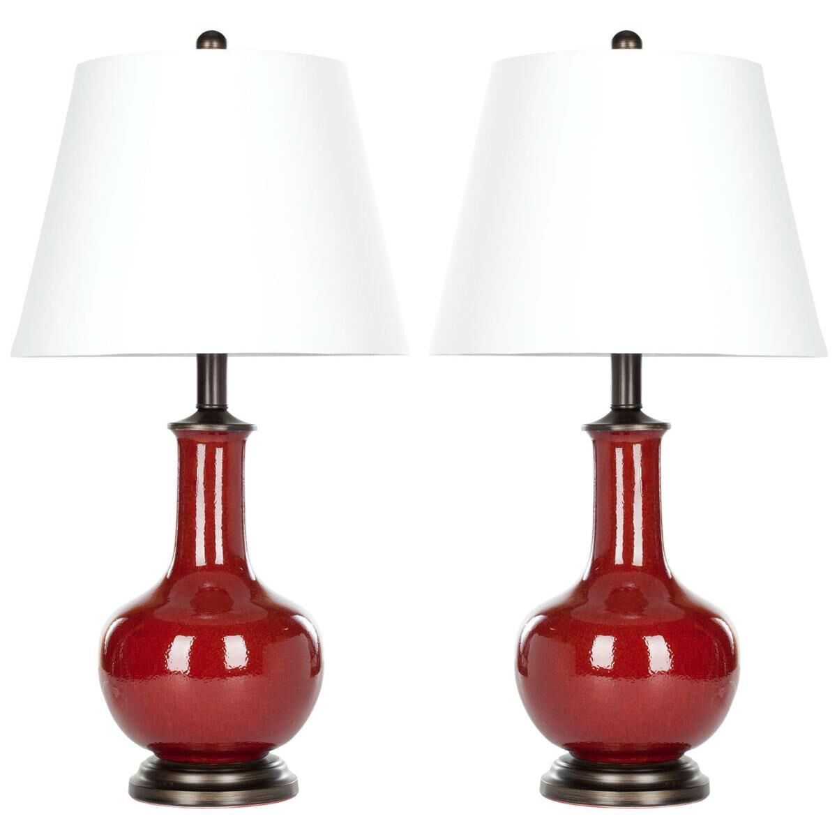 SAFAVIEH Lighting Collection Carolanne Modern Red Ceramic 24-inch Bedroom Living Room Home Office Desk Nightstand Table Lamp Set of 2 (LED Bulbs Included)