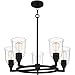 With its classic styling and clean lines, McIntire is the perfect choice to upgrade every aspect of your home. A striking matte black finish pairs perfectly with clear seedy glass for a bold yet subtle contrast - proving that simple does not have to mean boring. This versatile collection is available as a mini pendant, flush mount, pendant, island light, chandelier, or bath light. Matte black finish adds bold contrast and style Clear seedy glass creates unique and appealing illumination Durable steel construction is built to last and offers a clean, polished look Classic silhouette lends itself to many styles - including traditional, transitional, and farmhouse Fixture is sloped ceiling compatible.