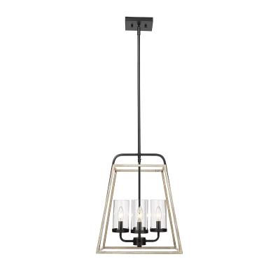 Millennium Lighting Bonnie 4 Light Pendant in Matte Black Grey Wood with Clear Glass Shades