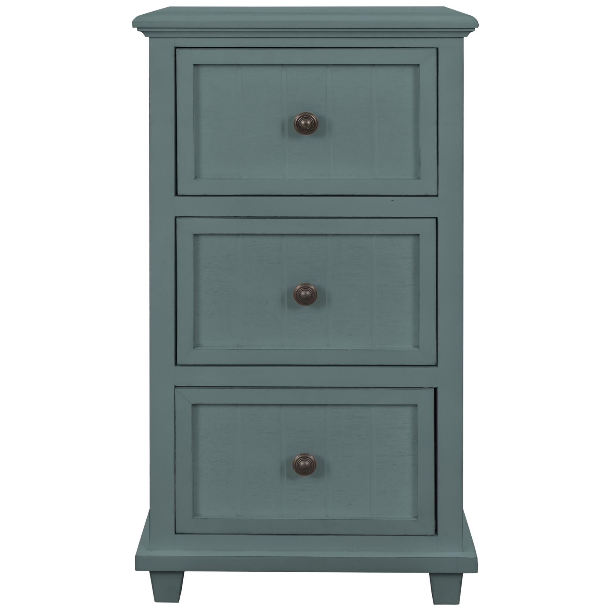Aged Seafoam Three Drawer Side Table 13In W. X 30In Ht. X 16In D.FeaturesDue To The Production Process, Each Piece Is Unique And No Two Are Exactly Alike.This three drawer side table has a thin yet usable design that fits perfectly next to your bed for as needed storage.The front paneled design of the drawers and the teal blue painted color is sure to make this a staple piece in your home.Collection: Aged Seafoam Material: Mdf, Acacia Wood Color: Aged Seafoam Wash Product Size: 16 x 13 x 30 Frame Color: Nc Frame Material: Solid Pine, Mdf Veneer Required Assembly: No Made In Vietnam
