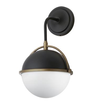 - Finish: Black/Weathered Brass - Glass: Satin White