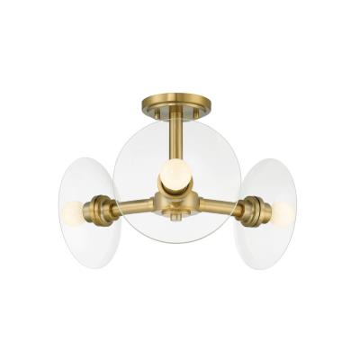 - Modern semi-flush in Brushed Gold with Clear Glass shields