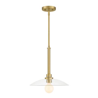 - Modern pendant in Brushed Gold with a Clear Glass shield