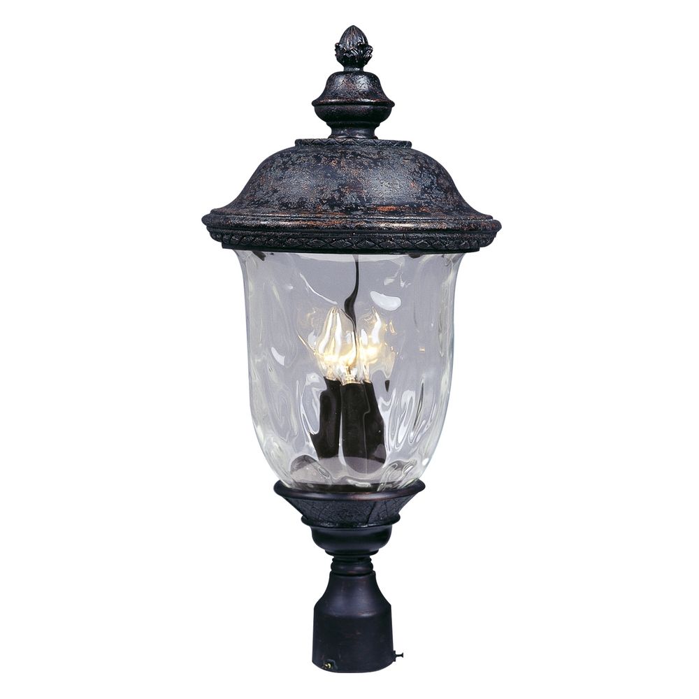 Maxim 40420WGOB Carriage House VX Water Glass Heavy-duty Outdoor Post/Pole Mount, 3-Light 120 Total Watts, 27"H x 13"W, Oriental Bronze