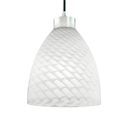 Made of metal and artisan glass. Comes in a polished chrome with white weave artisan glass. Each shade includes 8 feet of black cord for adjustable dropsSetting: IndoorFinish: Polished chromeShade: White weave Number of lights: 1Requires one (1) 60-watt A-19 Incandescent base bulb ( not included)Dimension: 11 inches high x 10.5 inches wideShade dimension: 6.25 inches high x 5.25 inches wideShade shape: Short tapered cylinderThis fixture does need to be hard wired Professional installation is recommended.All measurements are approximate and may vary slightly from listed information