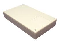 Hammond 1599KSGYBAT gray plastic enclosure with battery door Dimensions: 220 mm (8.7”) X 140 mm (5.5”) X 40.5 mm (1.6”).