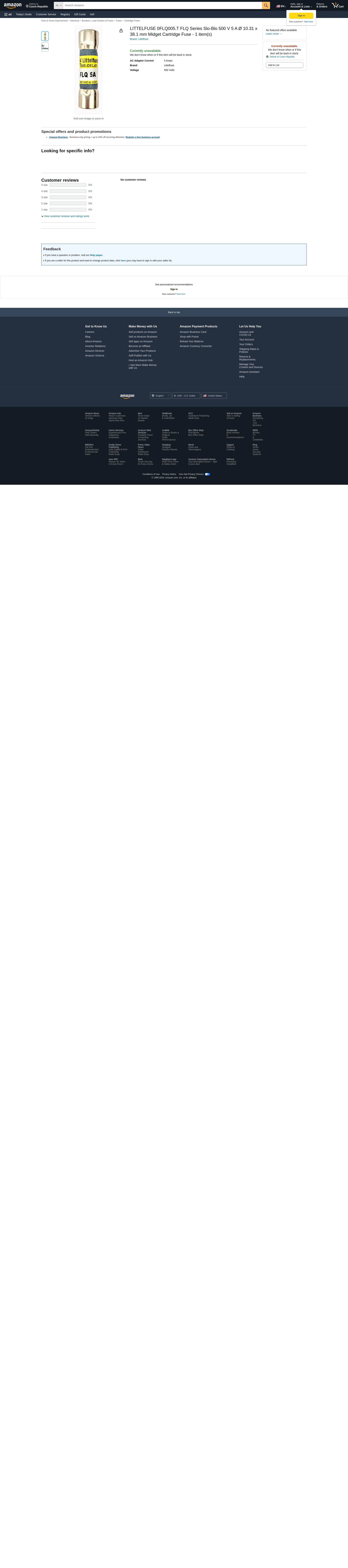 0FLQ005.T, Fuse Midget Slow Blow Acting 5A 500V Holder Cartridge 10.31 X 38.1mm CSA/UL (2 Items)