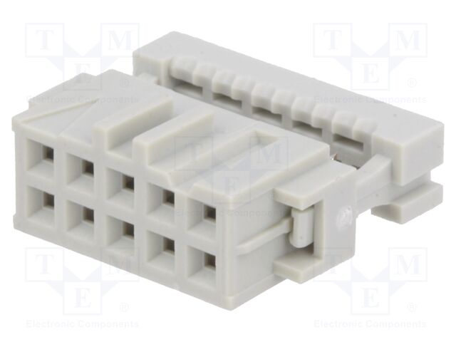 - <b>Price For:</b> Each <b> Connector Type:</b> Wire to Board <b> Series:</b> AMP-LATCH <b> Contact Termination:</b> IDC / IDT <b> Gender:</b> Receptacle <b> No. of Contacts:</b> 10 <b> No. of Rows:</b> 2 <b> Pitch Spacing:</b> 2.54mm <b> Contact Plating:</b> Gold <b>RoHS Compliant:</b> Yes