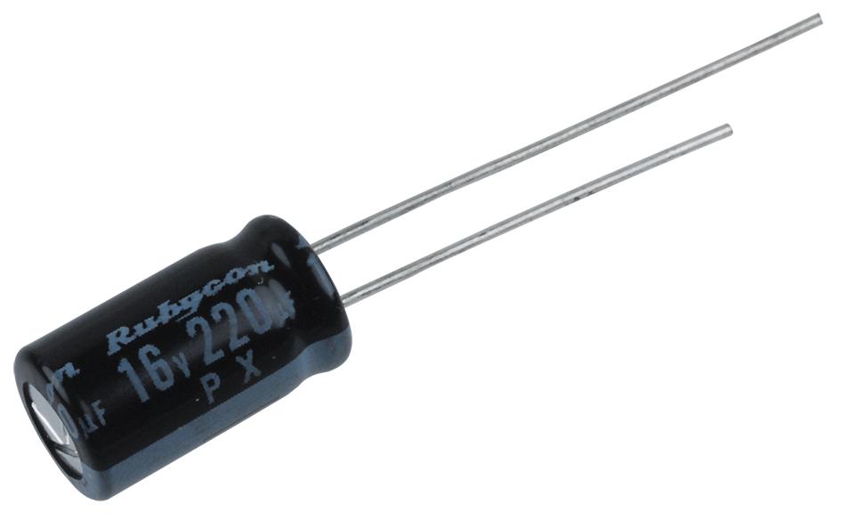 ALUMINUM ELECTROLYTIC CAPACITOR, 220UF, 16V, 20%, RADIAL; Capacitance:220µF; Voltage Rating:16V; Product Range:PX Series; Capacitance Tolerance:± 20%; Capacitor Terminals:Radial Leaded; Lifetime @ Temperature:1000 hours @ 105°C RoHS Compliant: Yes