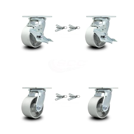 Semi Steel Cast Iron Swivel Top Plate Caster Set 4 w/4" x 2" Silver Wheels-Includes 2 Swvl with Brakes and Bolt on Swvl Lcks&2 Swvl with Bolt on Swvl Lcks-4000 lbs Total Cpty-Service Caster Brand
