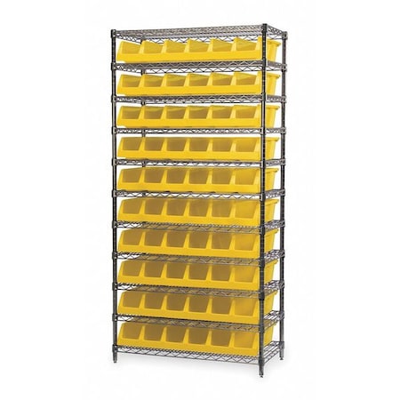 Akro-Mils AWS143630312Y Wire Bin Shelving System with 11 Shelves and Yellow Systems Bins, 36-Inch x 14-Inch x 74-Inch, Chrome