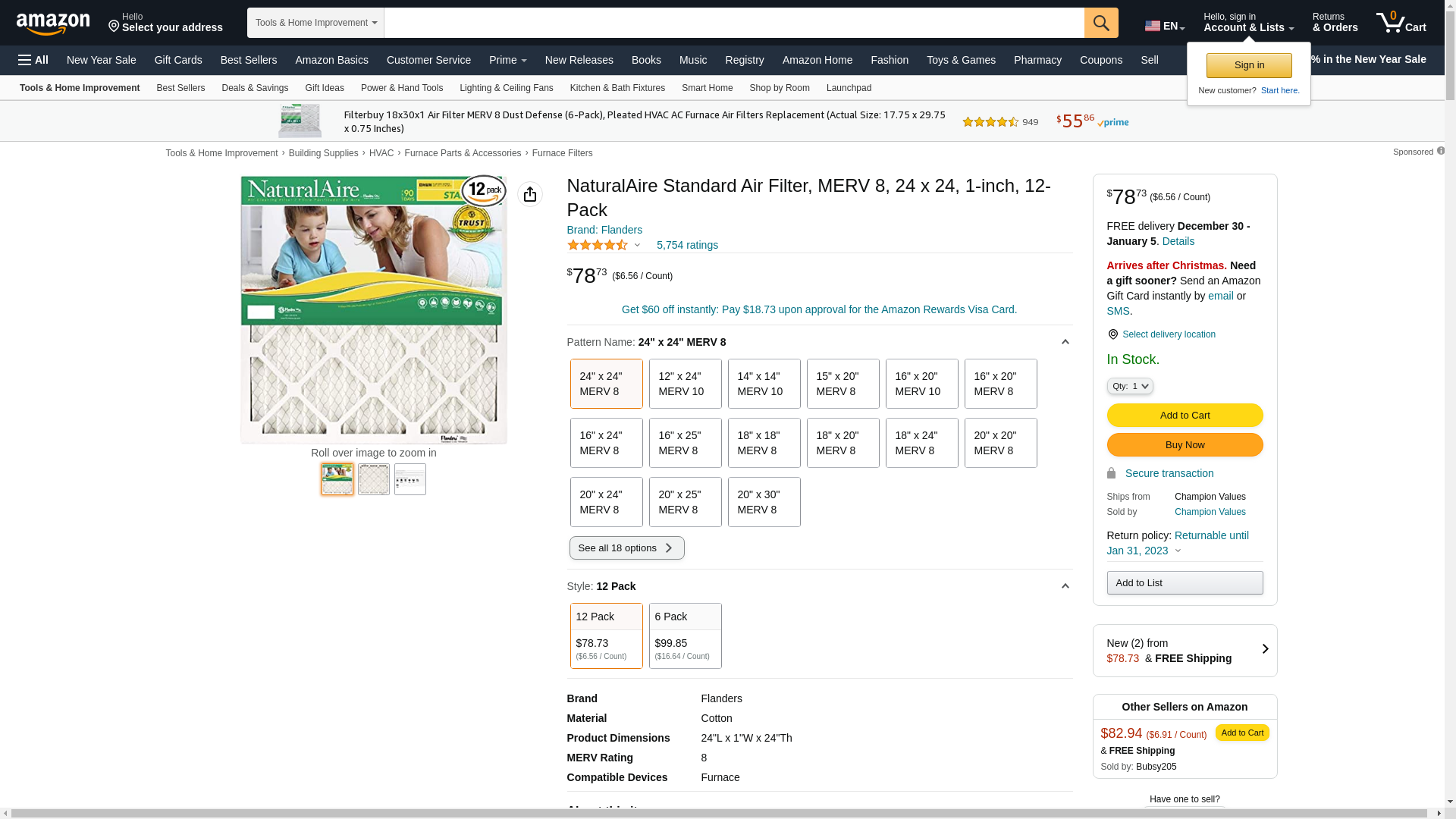 - Pack of 12: 24" x 24" x 1", NaturalAire Standard Pleated Air Filters