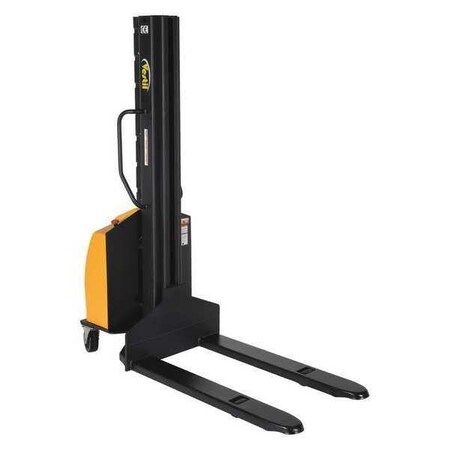 Vestil SLNM-118-FF Steel Narrow Mast Stacker DC Powered 118 in. Raised Height Fixed Forks 45 in. Fork Width 1,500 Lb. Capacity Yellow