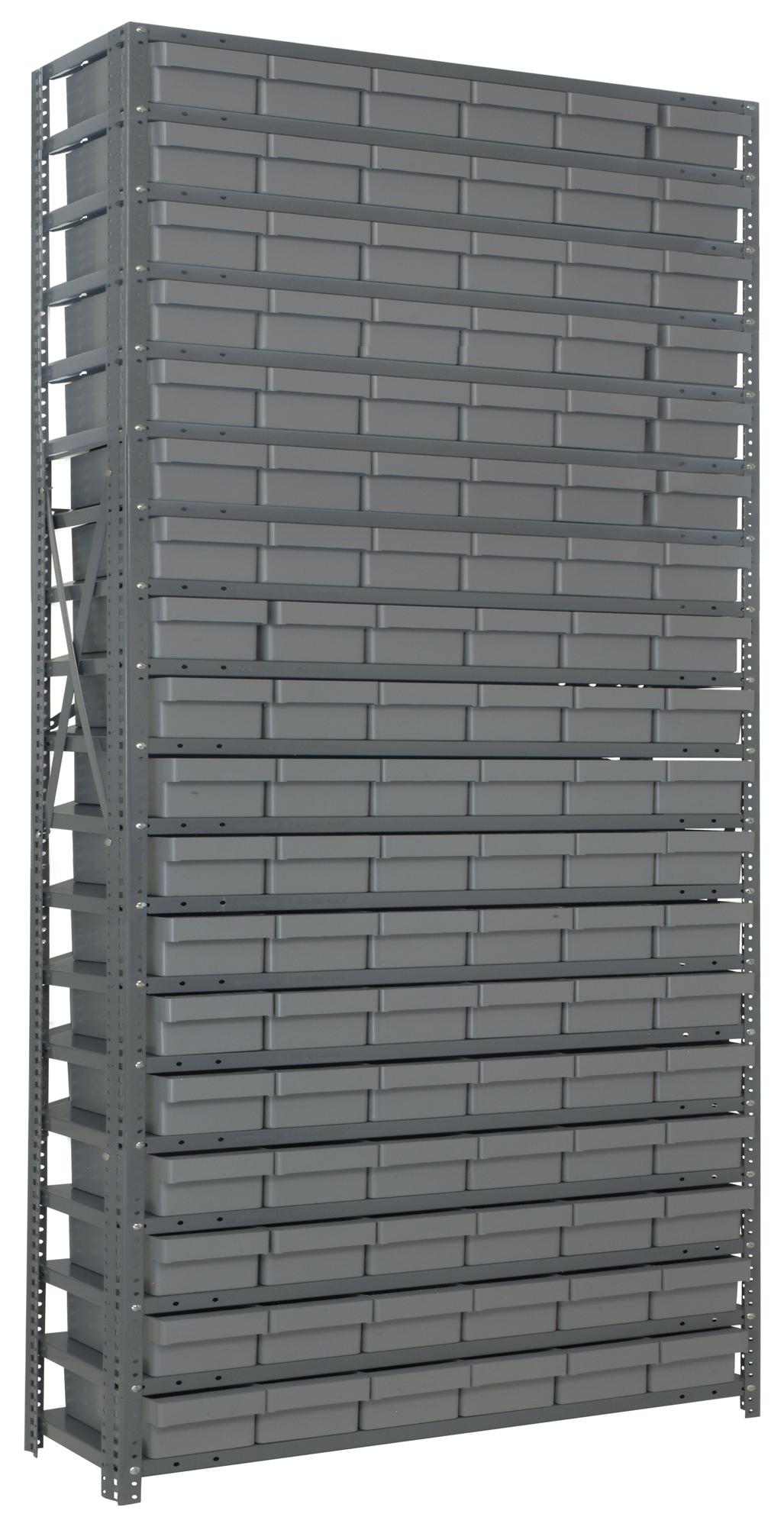 Open Shelving Storage System with Euro Drawers Bin Color: Gray, Bin Dimensions: 2 5/8" H x 5 9/16" W x 11 5/8" D (qty. 108)