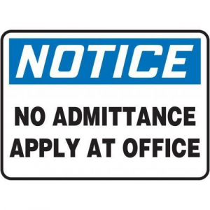 Order MADM408XL by Accuform Notice Safety Sign "No Admittance Apply at Office" - US Mega Store