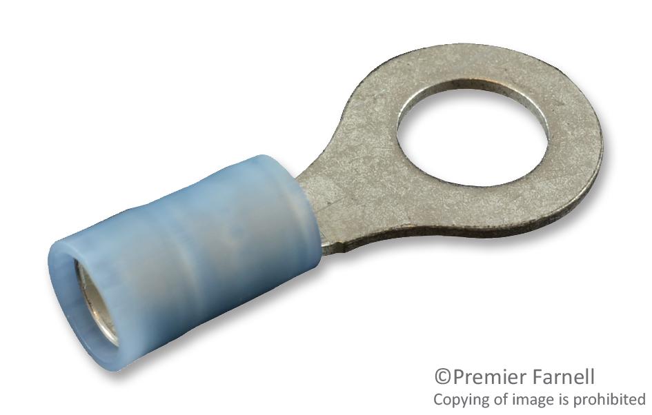 TERMINAL, RING TONGUE, 1/4", BLU, 14AWG; Stud Size - Metric:M6; Stud Size - Imperial:1/4"; Wire Size AWG Max:14AWG; Conductor Area CSA:2mm²; Product Range:Avikrimp 19073 Series; Insulator Colour:Blue; Connector Type:Ring Tongue RoHS Compliant: Yes