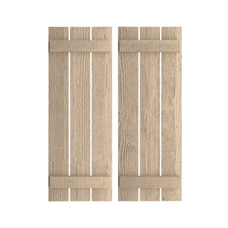 Ekena Millwork 17 1/2"W x 54"H Rustic Three Board Spaced Board-n-Batten Rough Sawn Faux Wood Shutters (Per Pair), Primed Tan