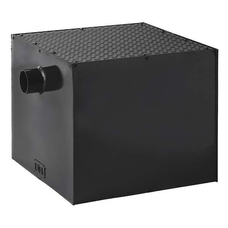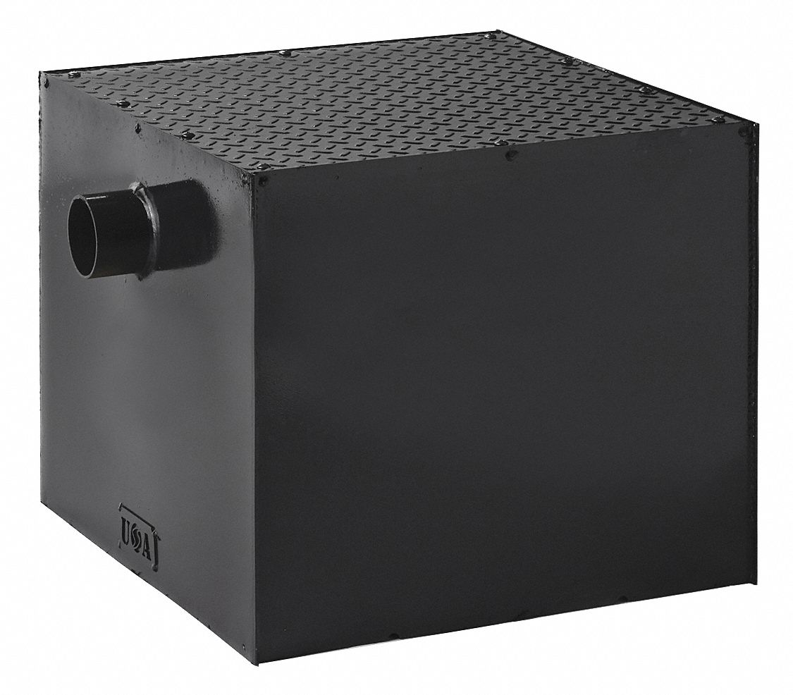 - <b>Price For:</b> Each <b>Includes</b>: Flow Control <b>Material of Construction - Drains</b>: Coated Fabricated Steel <b>Connection Type</b>: No Hub <b>Material</b>: Coated Fabricated Steel <b>Flow Rate</b>: 35 gpm <b>Overall Height</b>: 22-3/8" <b>Overall Depth</b>: 19" <b>Capacity</b>: 70 lb. <b>Application</b>: Retaining Fat, Oil, and Grease <b>Features</b>: Non-skid Diamond Plate Cover <b>Overall Width</b>: 23-1/4" <b>Flow Rate - Drains</b>: 35 gpm