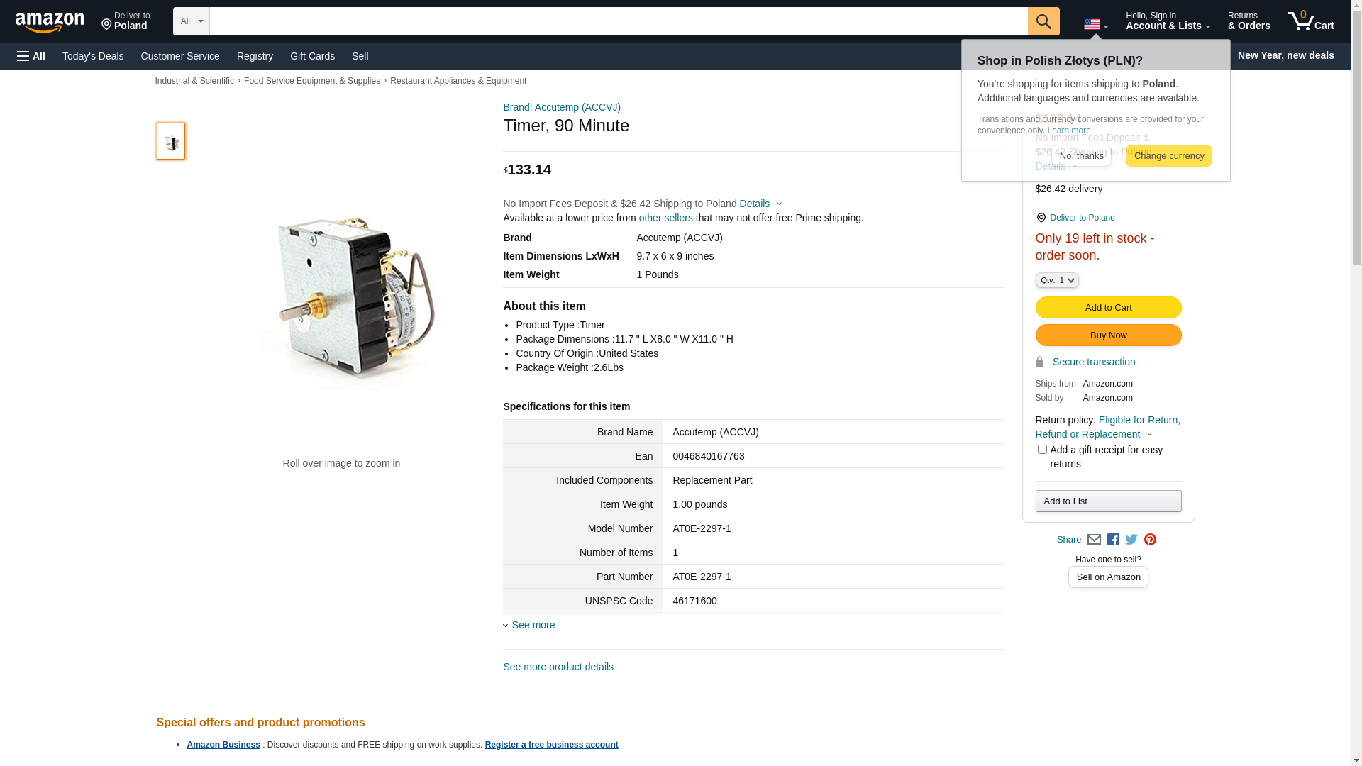 Accutemp AT0E-2297-1 Timer, 90 Minutes