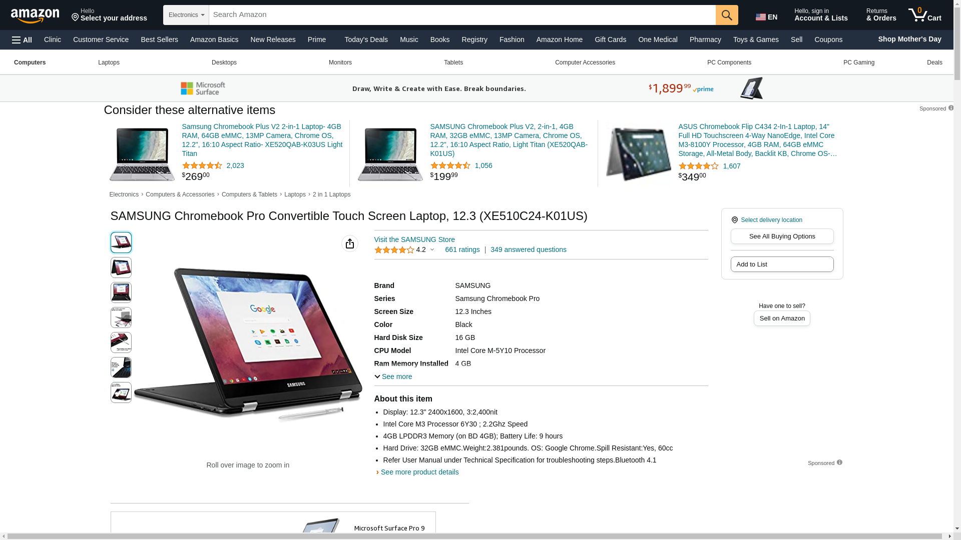 SAMSUNG Chromebook Pro Convertible Touch Screen Laptop, 12.3 (XE510C24-K01US)