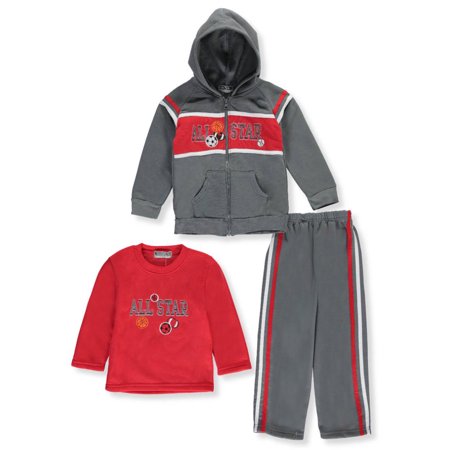 Give him the cool and cozy comfort of this Coney Island outfit! <ul> <li>Coney Island 3-piece outfit</li> <li>Fleece hoodie with colorblocking, embroidered design, rib-knit trim, split kangaroo pockets, and full zipper (100% polyester)</li> <li>Fleece long-sleeved shirt with embroidered design (100% polyester)</li> <li>Fleece joggers with striping down sides and elastic waistband (100% polyester)</li> <li>Machine wash cold, gentle</li> <li>Imported</li> </ul>