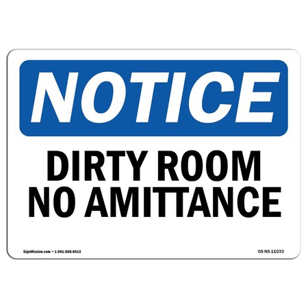 OSHA Notice Sign, Dirty Room No Admittance, 14in X 10in Decal