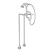 - Floor mount exposed two handle tub filler with cradle and single-function brass hand shower with metal insert