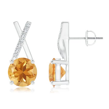 <ul> <li>Solitaire Round Citrine XO Stud Earrings with Diamond Accents in 14K White Gold (6mm Citrine)</li> <li>Approximate Carat Total Weight 1.47 ct</li> <li>Screw Back Closure</li> <li>Citrines are Heat treated for enhanced brilliance and lustre.</li> <li>Free Certificate of Authenticity and 30-Days Easy Returns.</li> </ul>